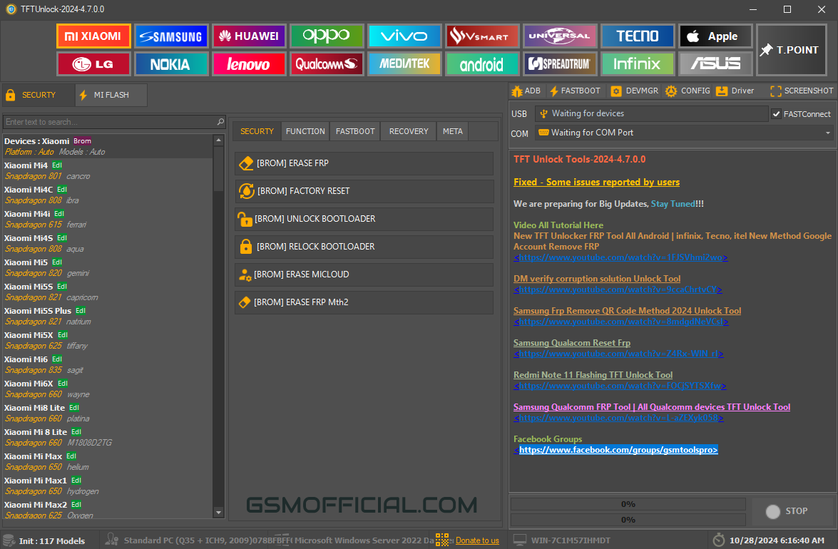 TFT Unlock Tool is a powerful utility designed to unlock Android devices. This software enables users to bypass restrictions and access full functionality of their TFT devices without official authorization. The tool operates by emulating an unlocking server, providing users with complete access to features including OS installation, updates and support.